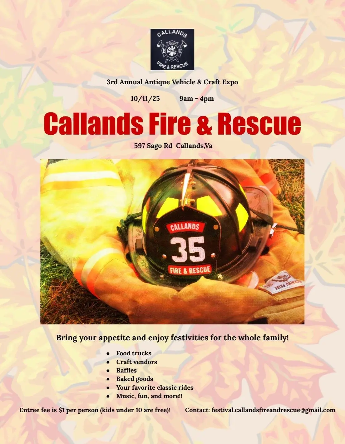 Join us on October 11, 2025 for our 3rd annual Callands Fire and Rescue Antique vehicle and craft show!!