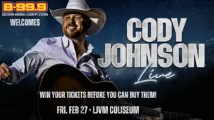 Win tickets Before You Can Buy Then on B99.9 FM. Listen for Your Chance to win tickets to Cody Johnson all week. When the Ticket Window Open be the correct caller at 276-629-9999. For another chance to win Click Here.