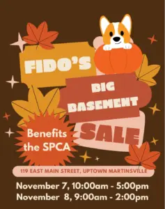 This is the BIG ONE!!!!! Fido’s last BIG BASEMENT SALE of 2025. We are going out with a BANG because the goal is to clear the basement before winter … so that means that items are priced to GO!!! Plan now to attend and remember that ALL proceeds go to the SPCA Friday, November 7 10:00-5:00 and Saturday, November 8, 9:00-2:00.  119 East Main Street Uptown Martinsville (276) 656-1101 Fido’s BIG BASEMENT SALE | Facebook